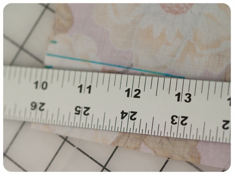 1. With right sides together we are going to sew the side seams (shorter sides of skirt pieces). We will use a 1/2 inch seam allowance for this. Before you sew your side seams make sure you have the fabric in the direction you want it. Check to make sure that none of the panels are upside down. You will notice in my Promenade fabric that the two flower bunches with the tape measures next to them have the flowers going all in the same direction. Look carefully to make sure your print has the same orientation as each of the other panels.