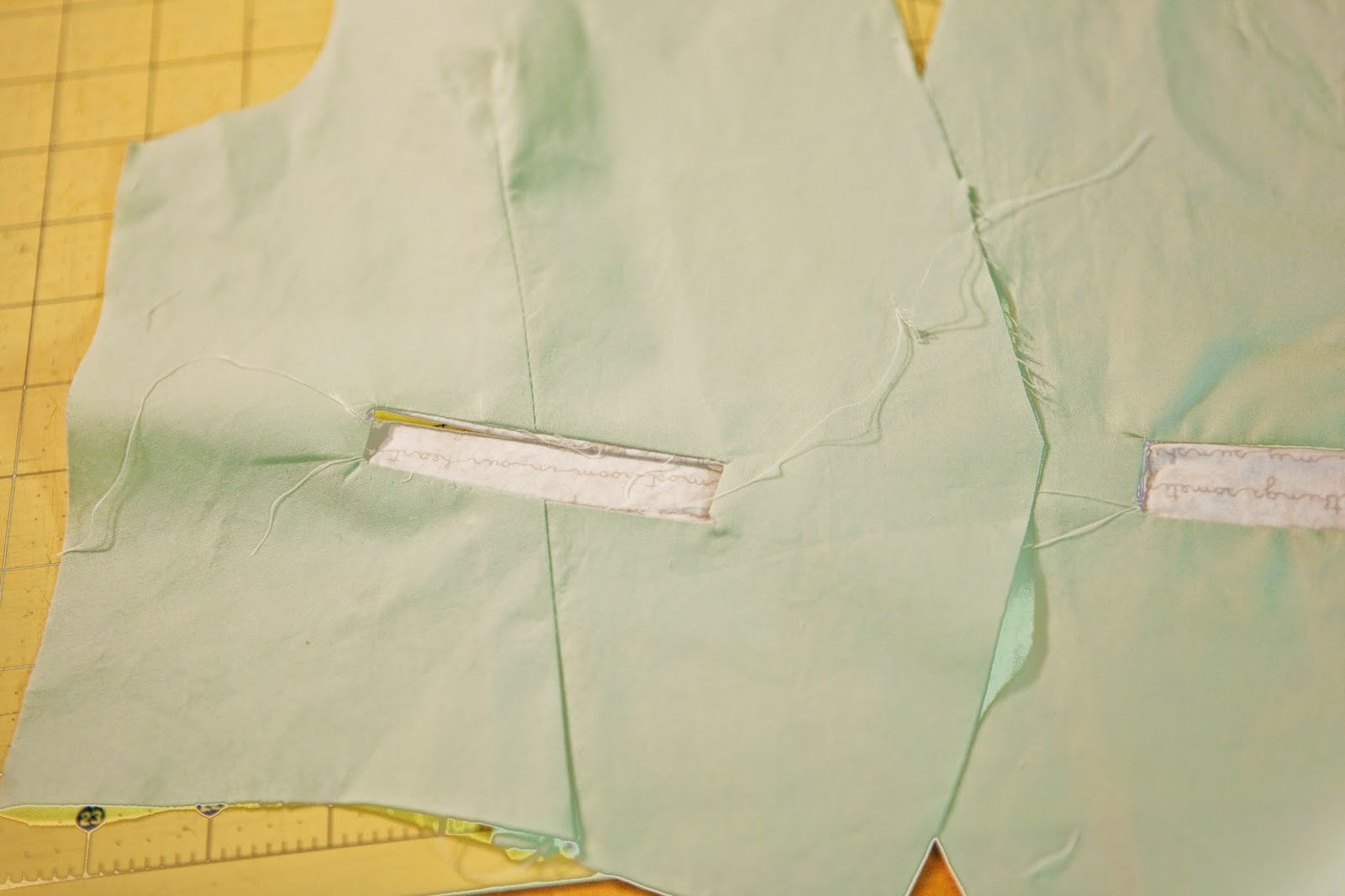 - There should be interfacing on both the welt pocket and on the vest where the welt will be sewn - this is going to allow you to get a nice crisp welt opening.